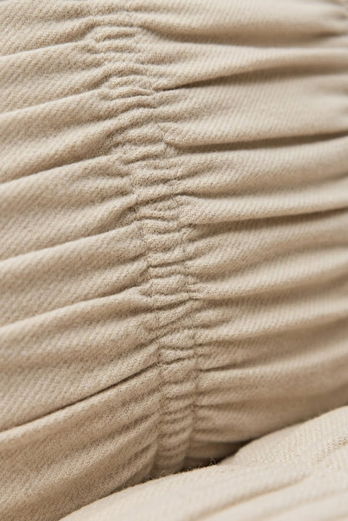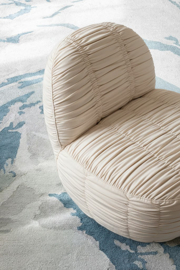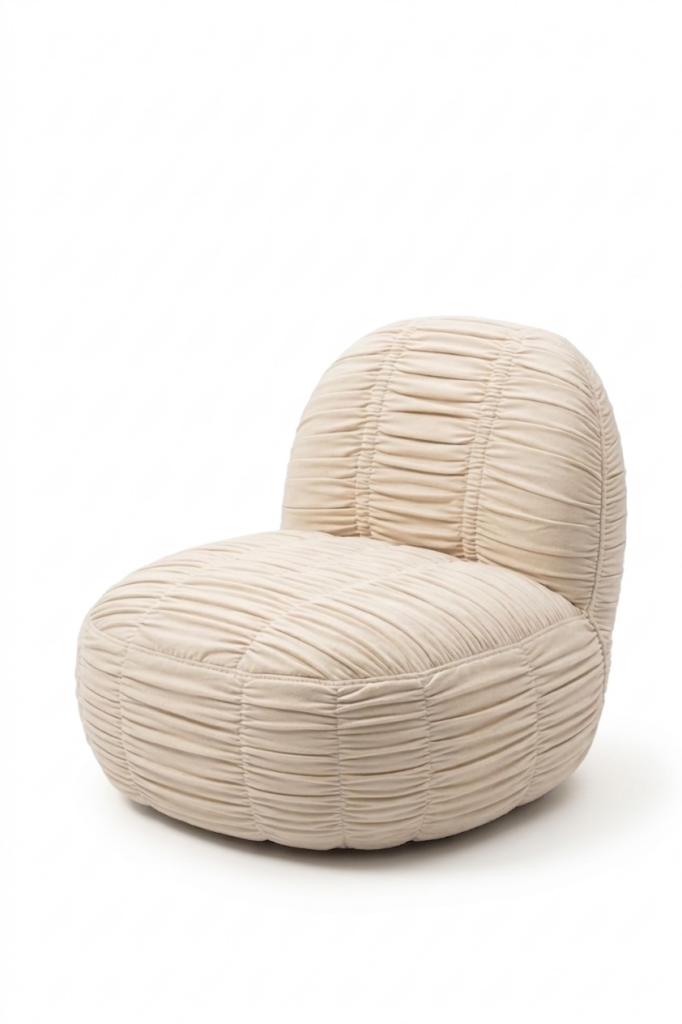 Prolongement naturel de notre pièce iconique, l’assise Le Smock déploie la noblesse du plissé à l’échelle du mobilier. Ici, le relief graphique devient structure : chaque pli, patiemment travaillé à la main, sculpte le volume pour offrir une assise à la fois souple et monumentale.