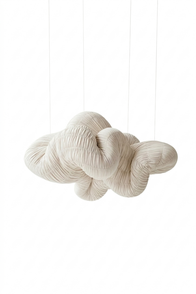 Véritable mobile de haute facture, cette pièce exprime la précision du geste Maison YSY dans une verticalité nouvelle. Une installation où la noblesse du satin de laine rencontre la poésie du mouvement suspendu.
