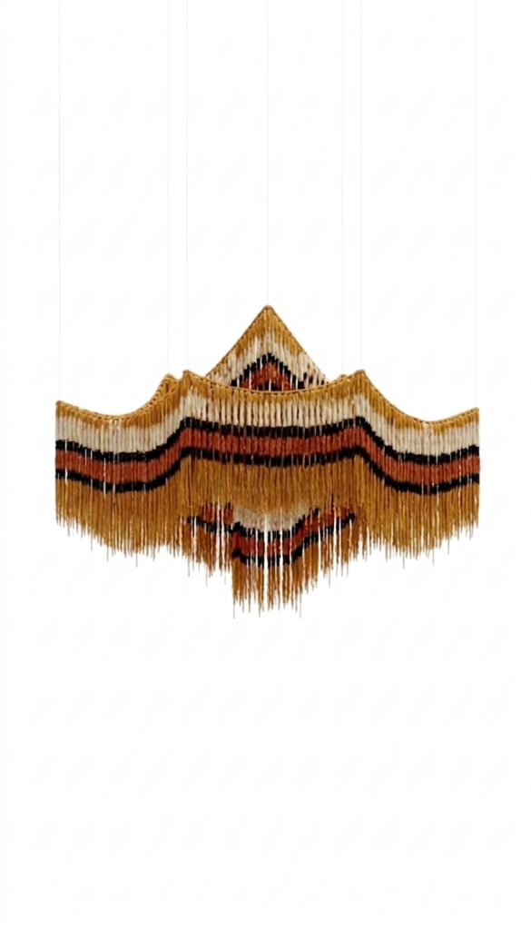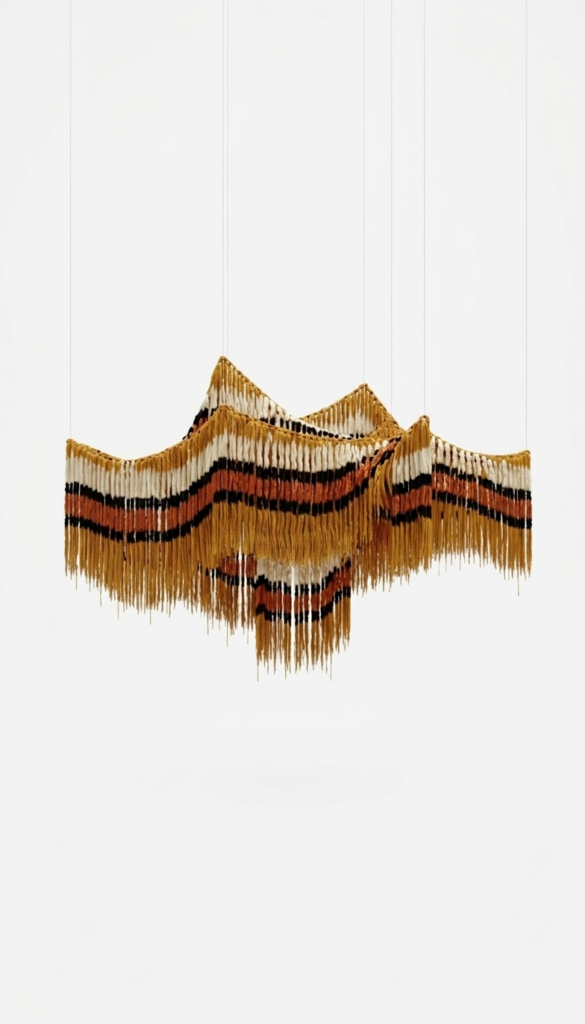 La suspension L’Onde déploie une fluidité graphique presque hypnotique. Ses courbes régulières évoquent un mouvement perpétuel, une respiration suspendue dans l’air. Cette pièce apaisante est dessinée pour adoucir l’espace et lui offrir un rythme naturel, transformant le plafond en une installation textile vivante d’une grande modernité.